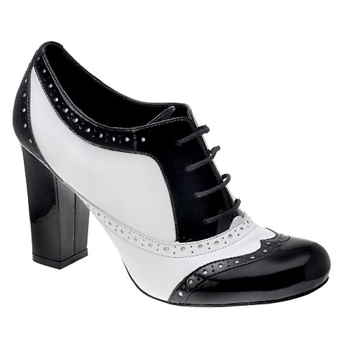 This year, the shoe model makes a huge comeback. This sophisticated style combines two-tone upper and bold block heel. Approximate heel height is 3.3 inches.